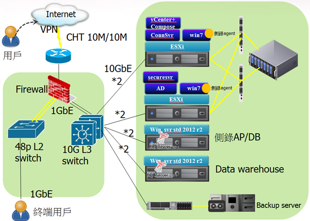 • 以VDI集中管理終端用戶資料,保護資料倉儲平台,提升資訊安全。